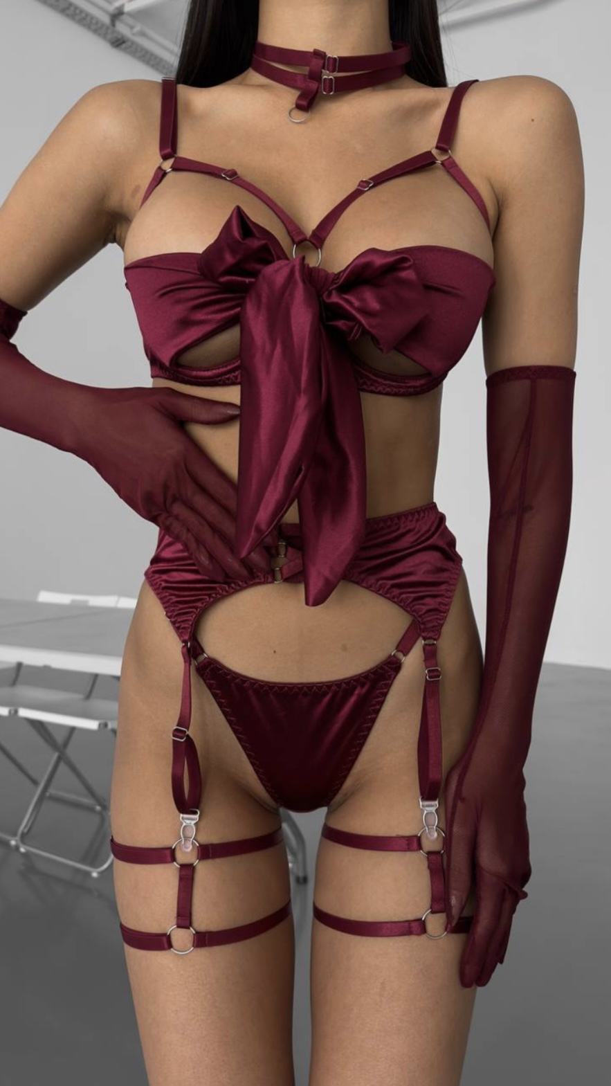 Incluye set de 3 piezas (bra, pantie y liguero)